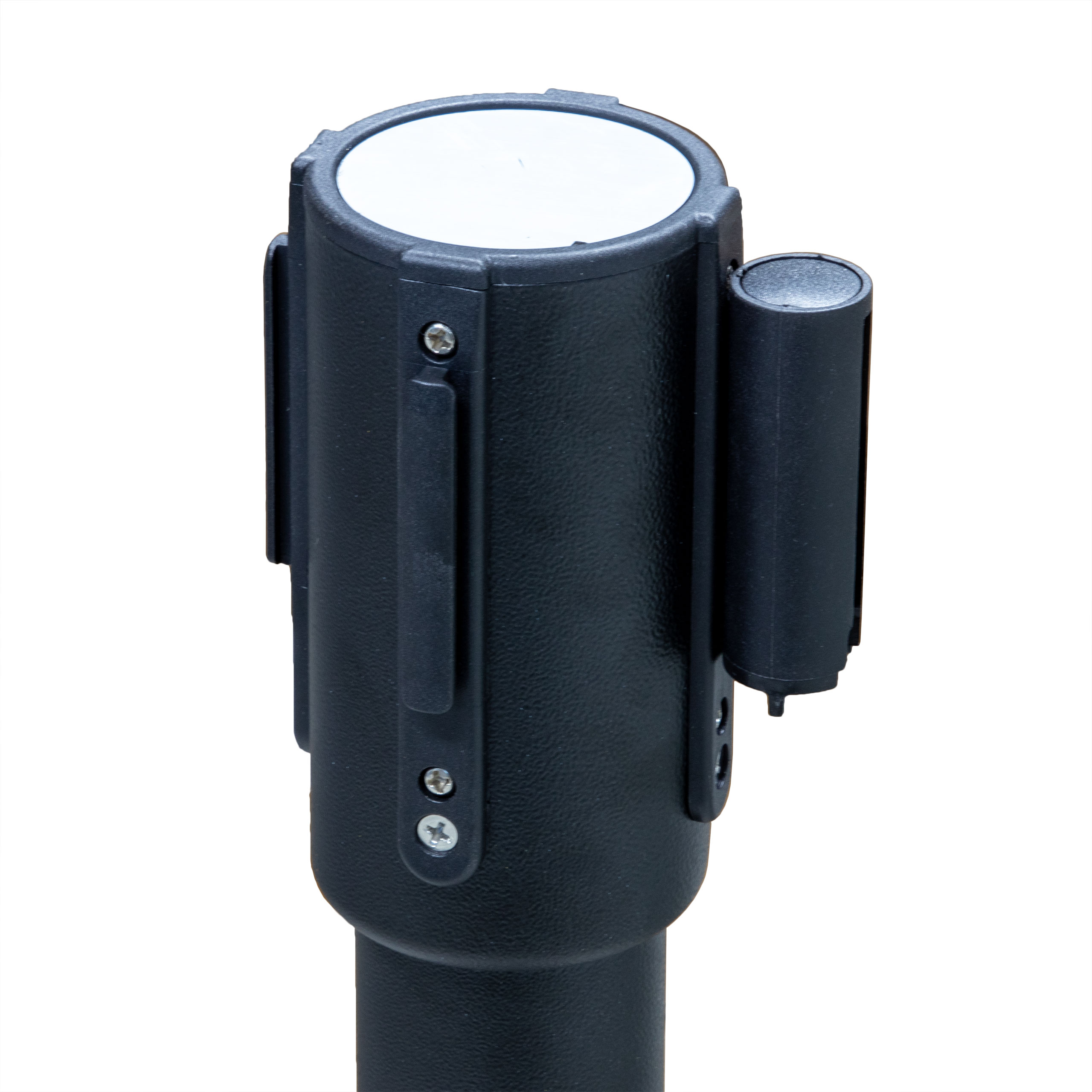 Absperrpfosten Absperrständer schwarz mit roten 2 Meter Gurt mit Rollen - Band Personenleitsystem