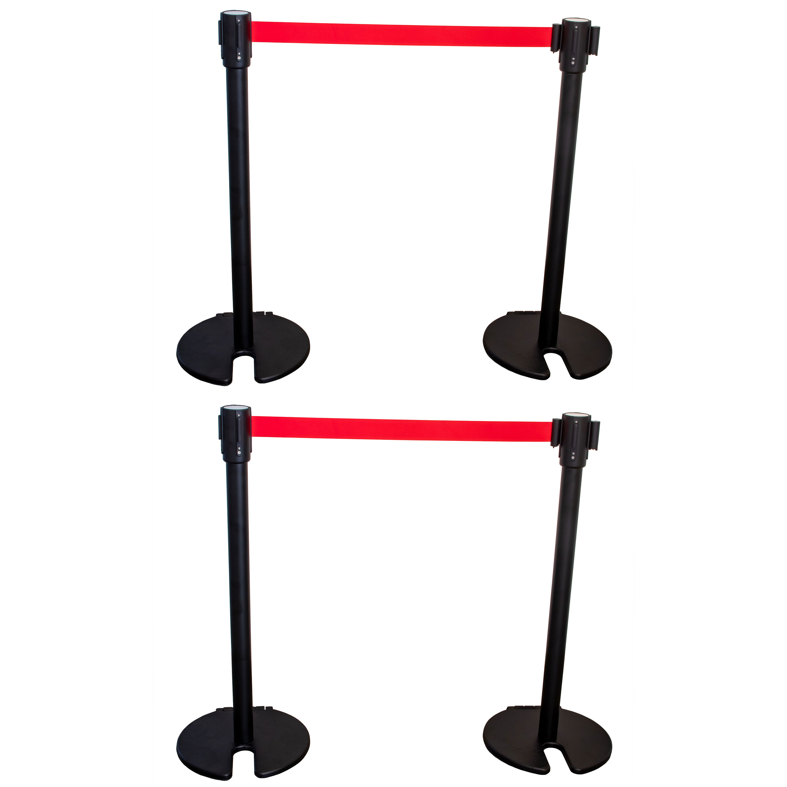 AcMax 4x Absperrpfosten Absperrständer schwarz mit roten 2 Meter Gurt mit Rollen - Band Personenleitsystem
