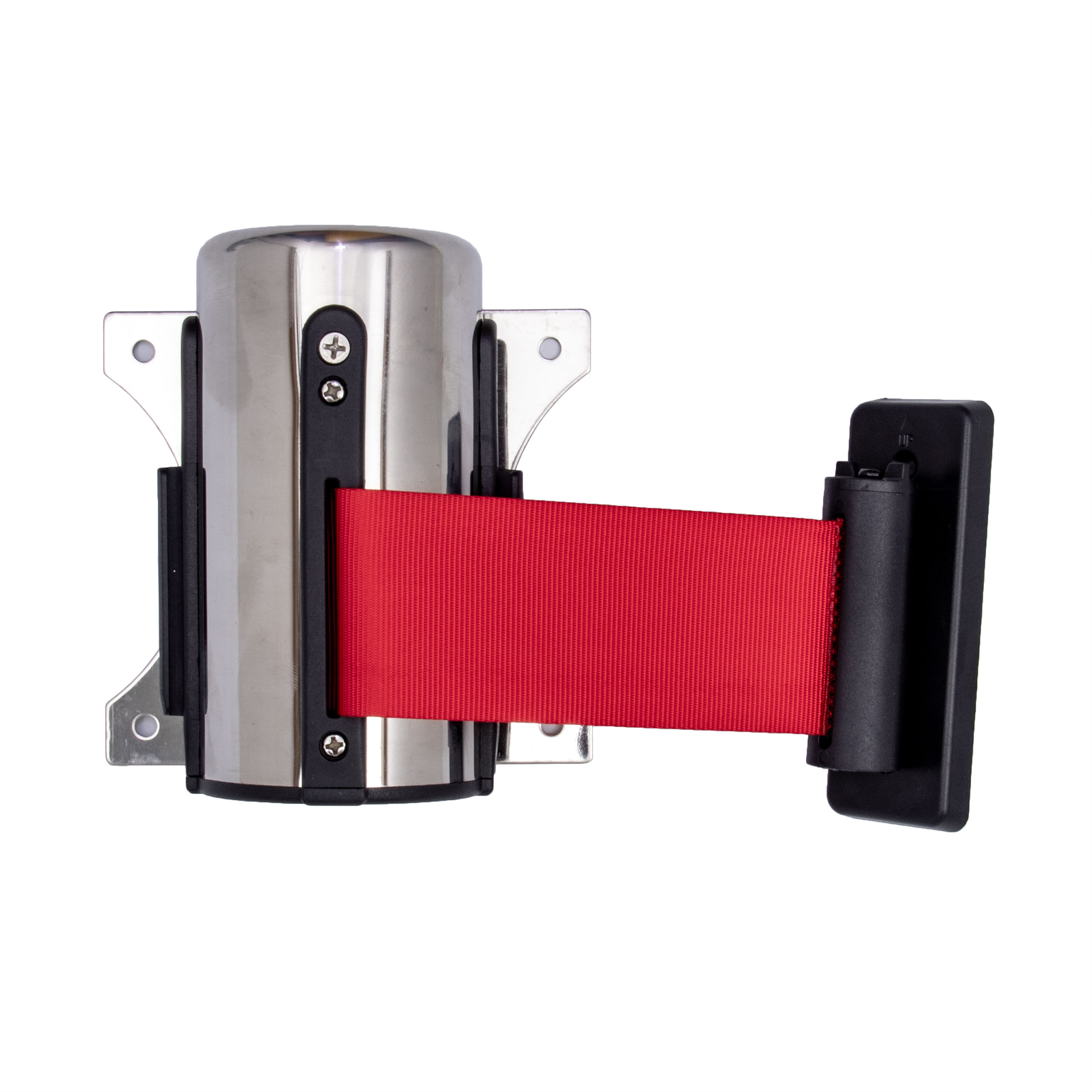 AcMax Absperrband silber Wandmontage mit roten einziehbaren 3 Meter Gurt - Band Personenleitsystem Abgrenzungsständer
