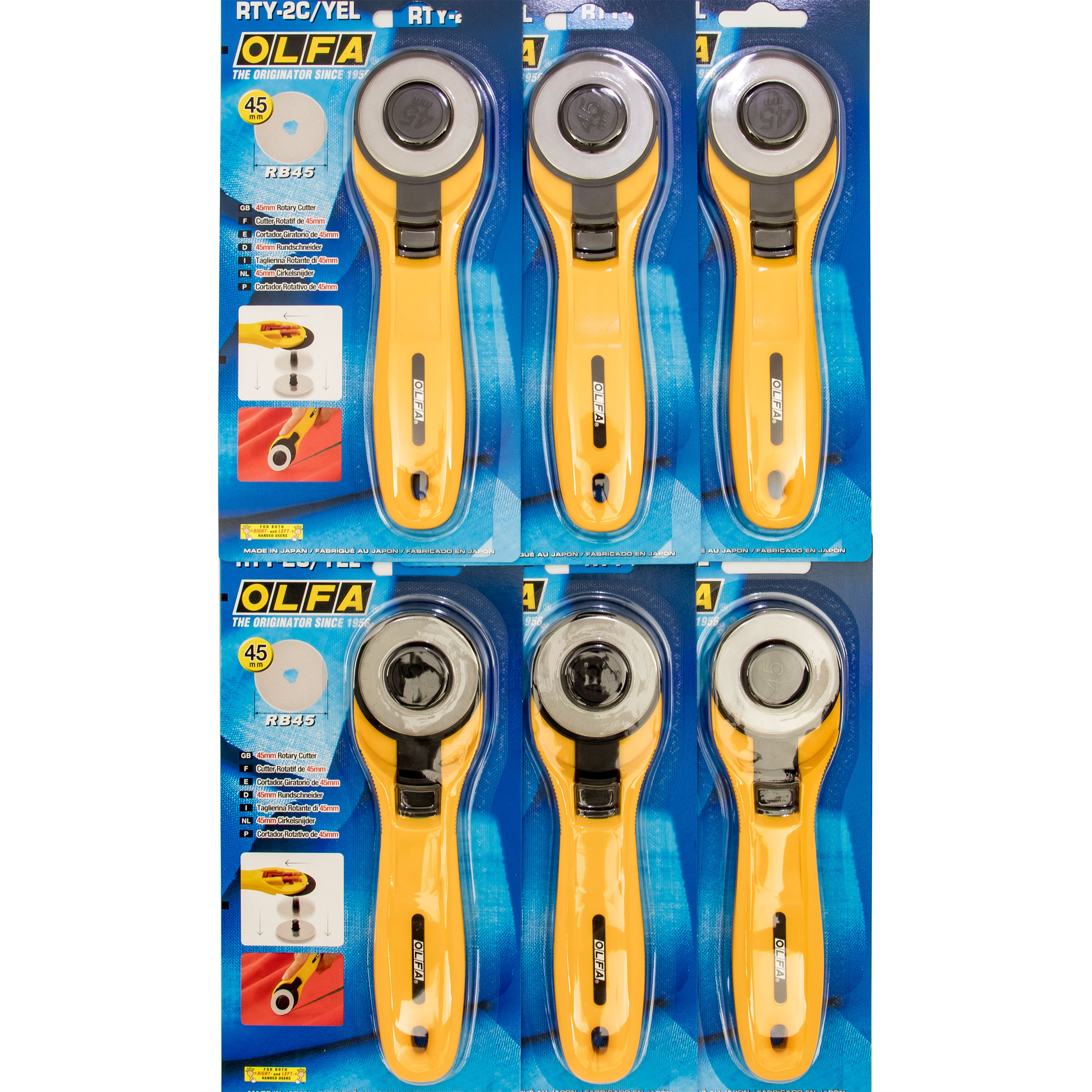 Olfa 6 Stück RTY-2C/ Rollschneider 45 mm in Gelb