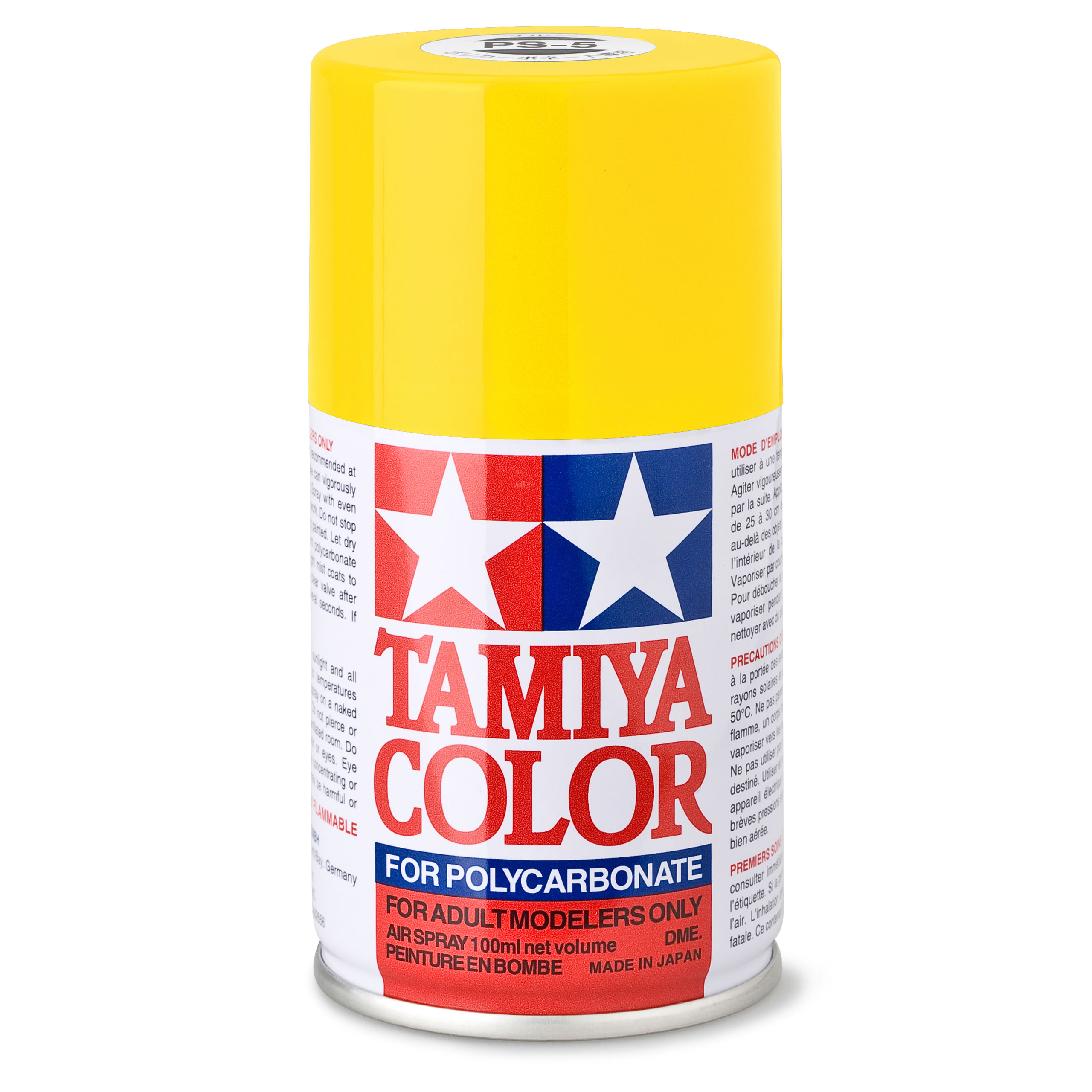 TAMIYA PS = Polycarbonat Lexan Sprayfarben sind speziell entwickelt, um unlackierte Bausatzkarosserien zu lackieren. Zahlreiche Farbtöne stehen zur Auswahl und erlauben die individuelle Gestaltung von Modellen. Jede Dose enthält 100 ml hochdeckender Farbe, die Öl- und Kraftstoffresistent sind, dies erlaubt den Einsatz an Nitro-Modellen.